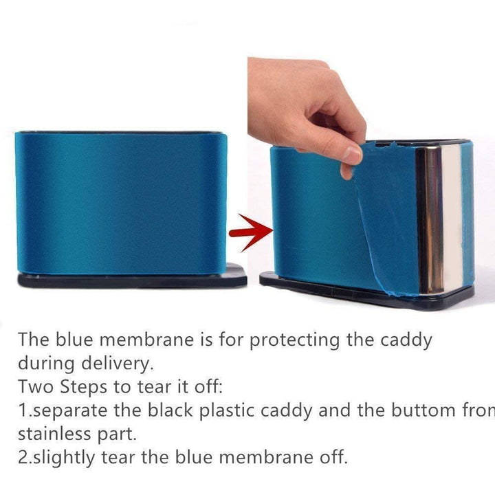 - SPOUT AT BOTTOM: the sloping base bottom catches water and allows water in the caddy to flow automatically into you sink through the integrated pour spout, no worry about mildew any more.