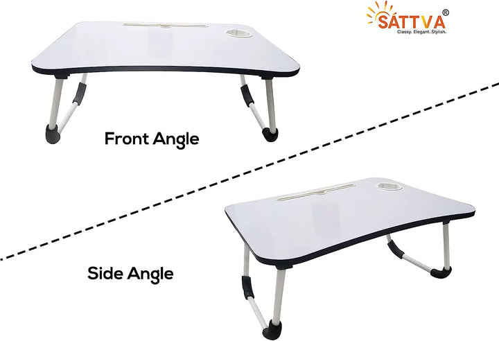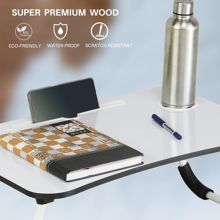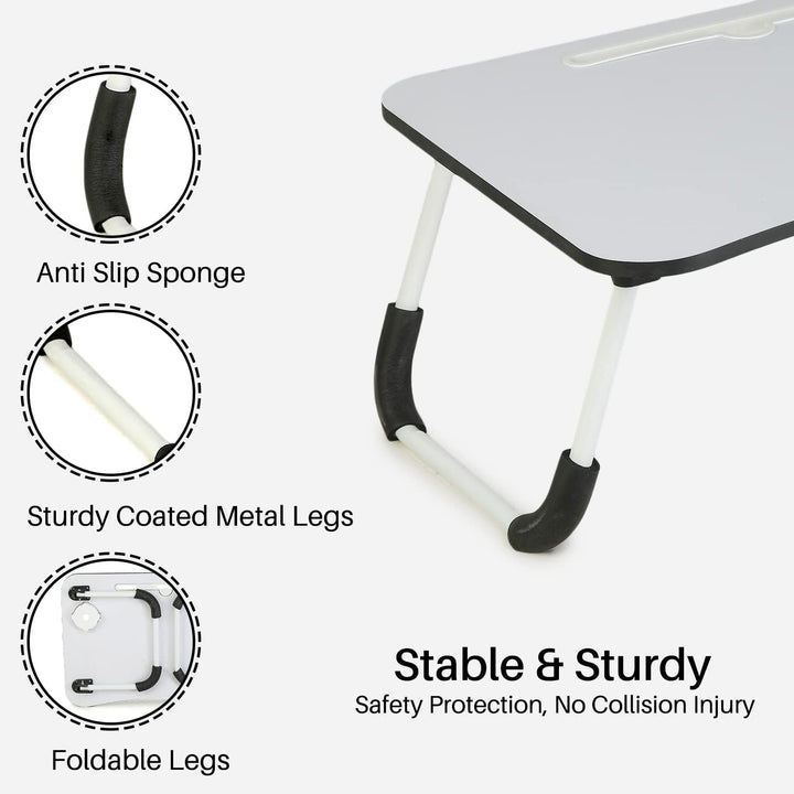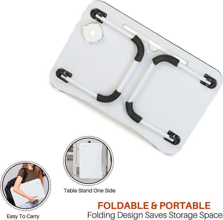 Laptop Bed Table With Foldable Metal Legs, Tablet & Cup Holder - Fits Upto 17" Portable Bed Desk For Laptop, Eating And Writing