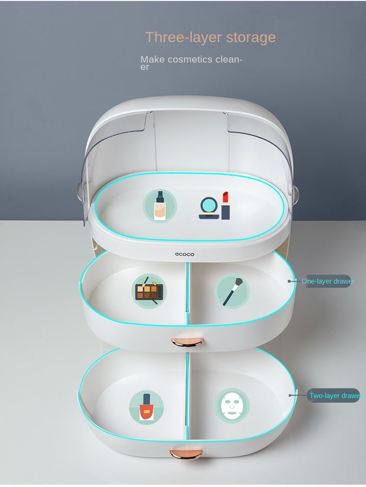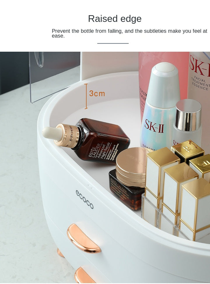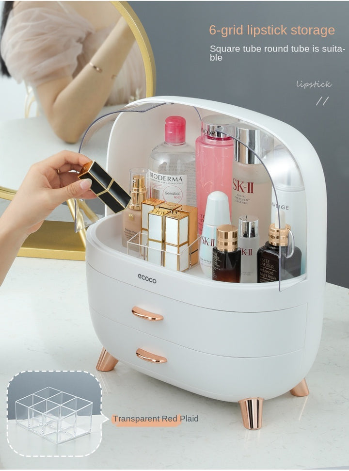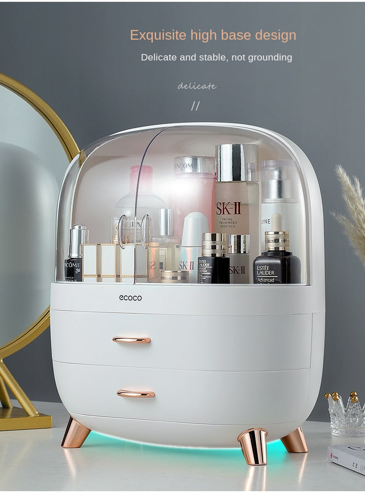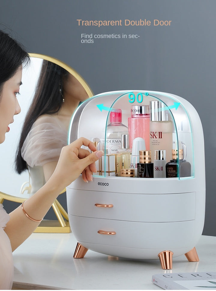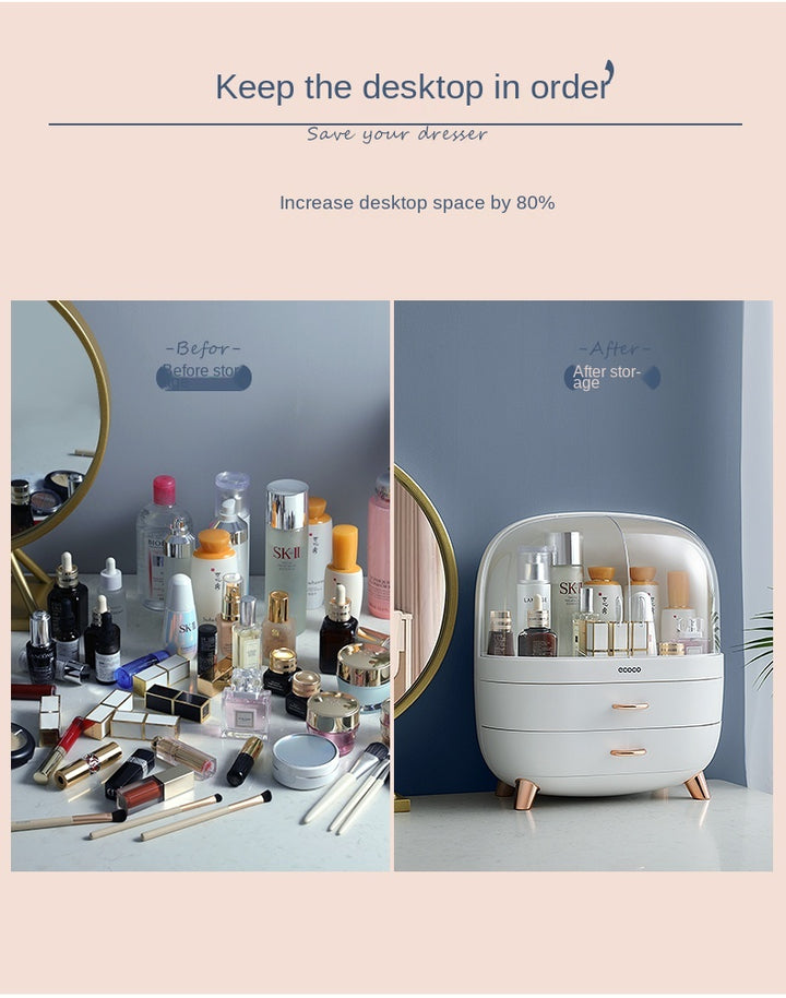 - Transparent double door to find cosmetics in one second, smooth drawer, easy push and pull.
