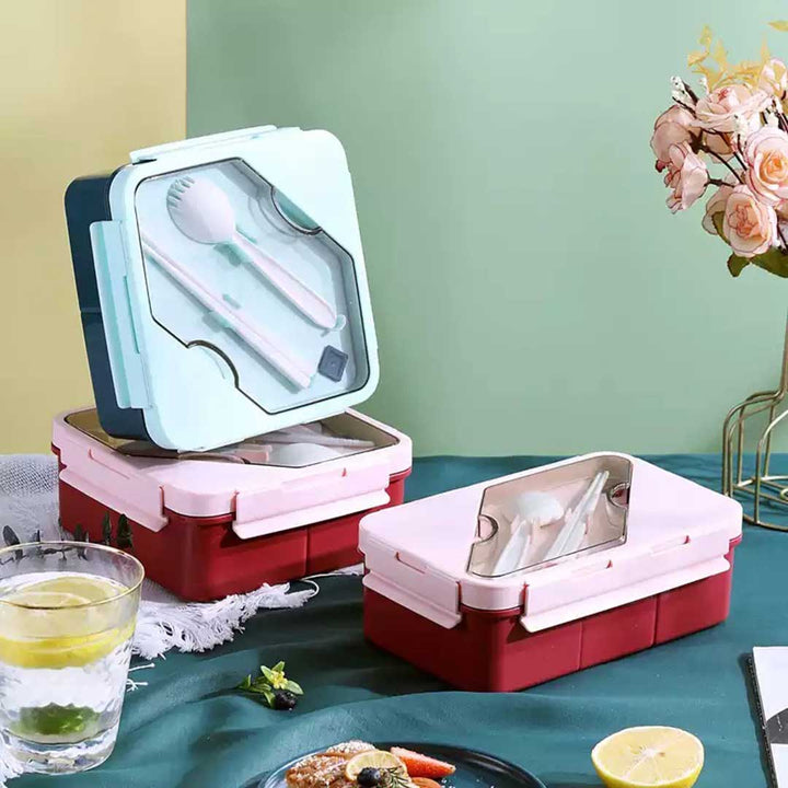 Lunch Box 3 Compartment With Utensils Eco-Friendly Leakproof Microwave Safe