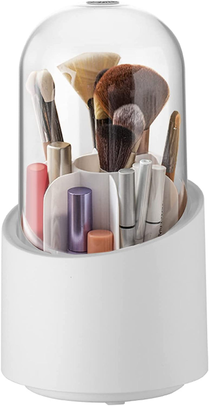 Makeup Brush Holder With Lid, Rotatable Clear Acrylic Makeup Brush Organizer Cup
