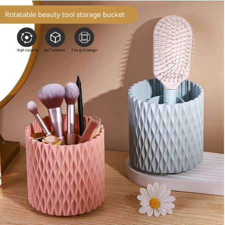 - Rotating storage tube, the unique design of 5 independent slots, suitable for pencils, pens, ruler, scissors, makeup brushes, etc.