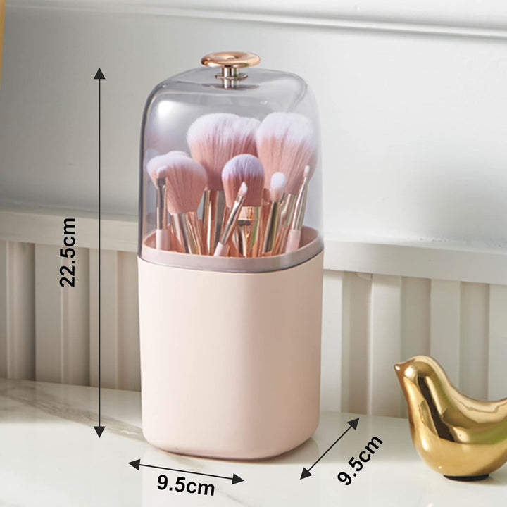 - This dustproof makeup brush organizer is elegant to effortlessly meet any room decor, you could place it in your bedroom, bathroom, dressing room, bedside table, vanity countertop.