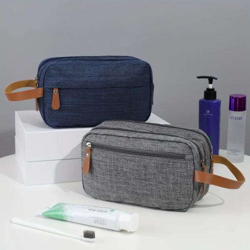 Men's Canvas Double Zipper Travel Toiletry Bag