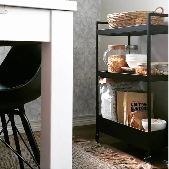 Metal 3-Tier Serving Trolley For Kitchen Home Office Bathroom Mobile Storage Rack Shelves - Black