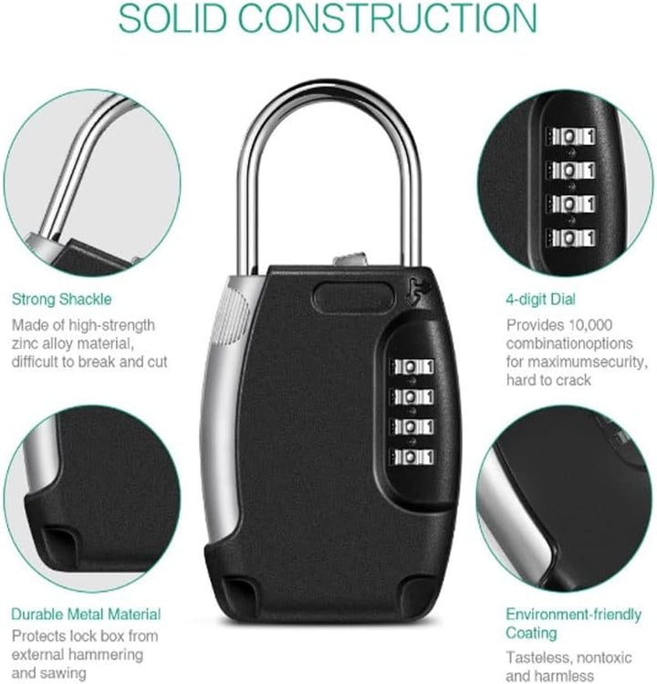 - DURABLE MATERIALS: High strength zinc alloy body and hardened steel shackle provide extra resistance for sophisticated sawing. Harmless to human body. These construction make this lock box strong, durable and durable for everlasting rusting