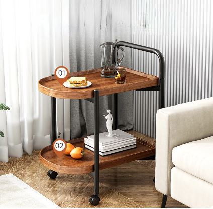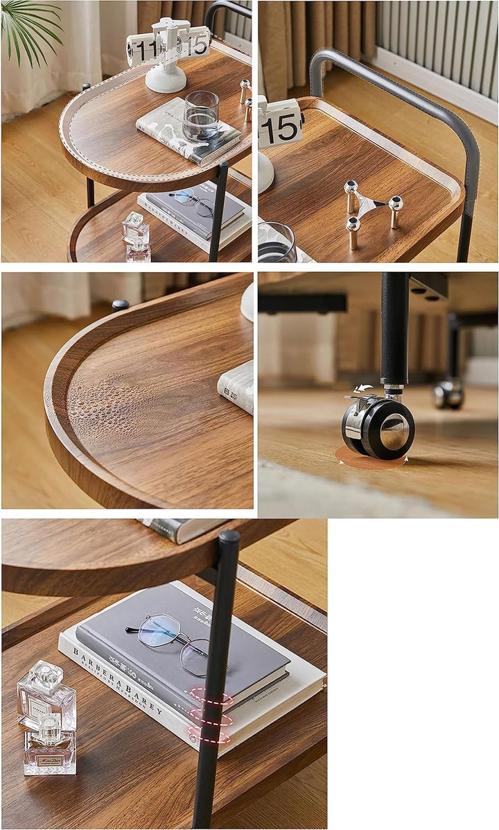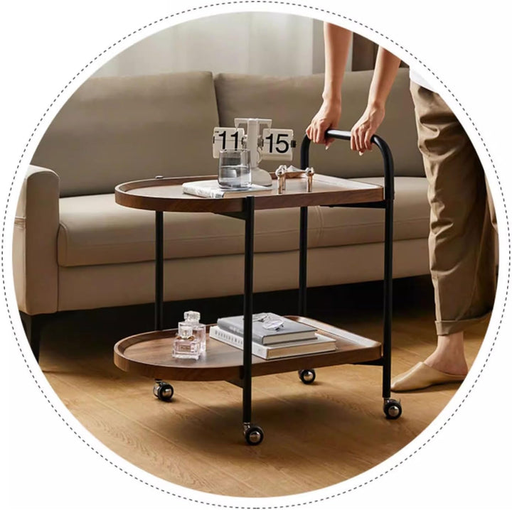 Movable Coffee Table Side Table Tea Table 2-Tier With Wheel
