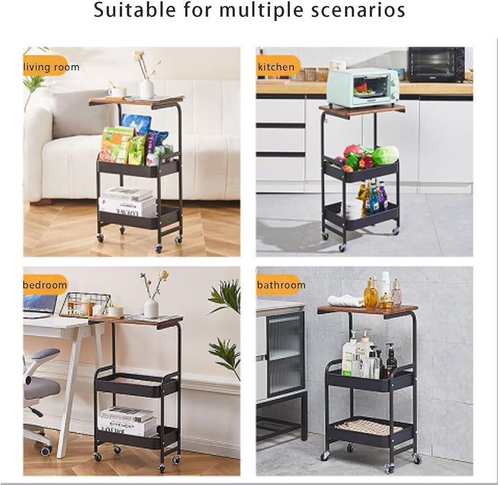 Multi-Layer Kitchen Living Room Storage Shelf Trolley With Table Board Cart