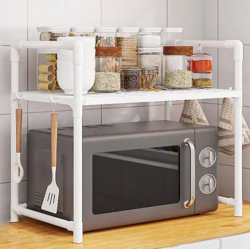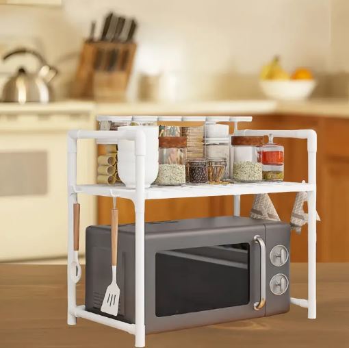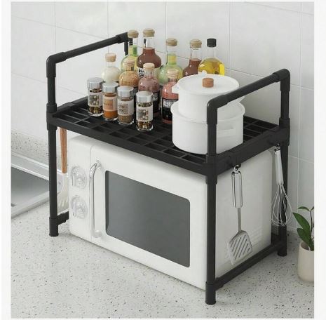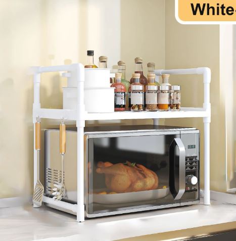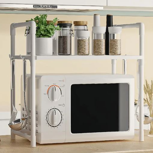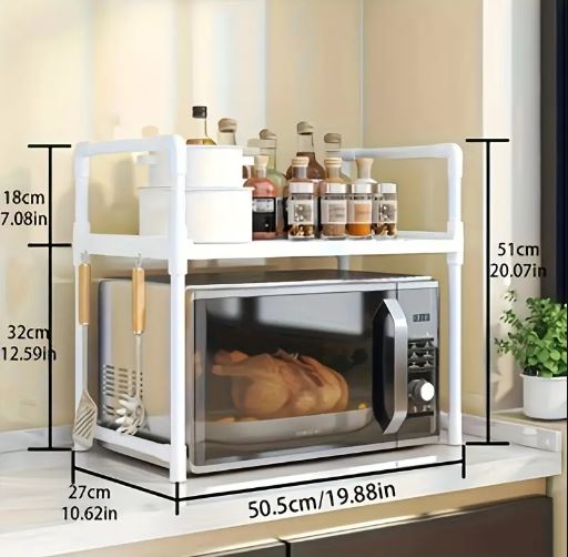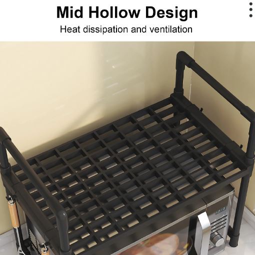 - Multi-Layer Storage: Say goodbye to clutter and improve work efficiency with this microwave oven rack, which has a rag hook on the side for quickly taking and organizing items.