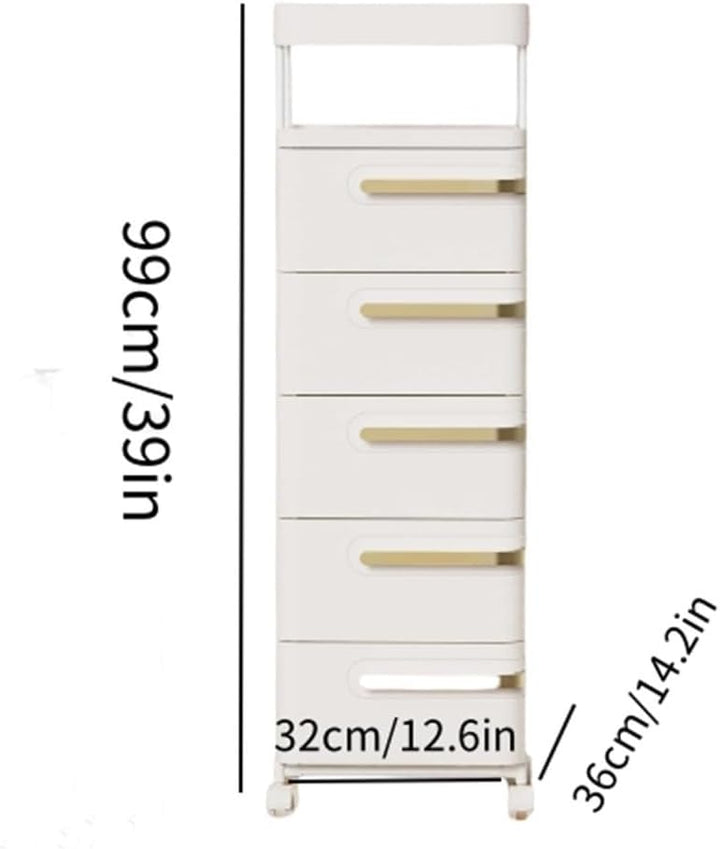 Multi-Tier Storage Cart with Drawers, Portable Rolling Organizer for Office, Bedroom, Living Room, and Bathroom