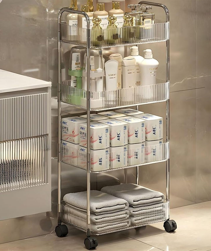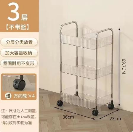 Multifunction Storage Rolling Utility Cart, Slim Sliding Organizer Rack For Bathroom Kitchen Living Room (3Tier)