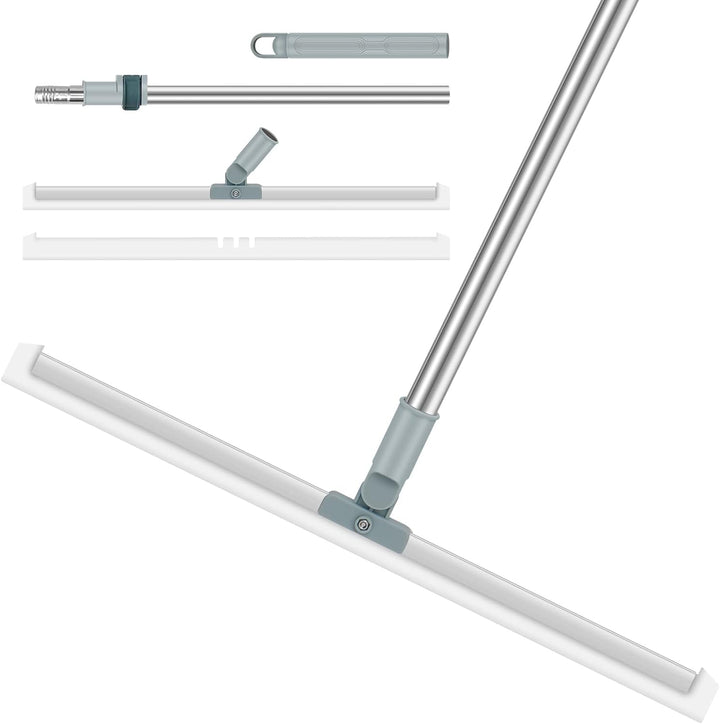 - This floor squeegee is equipped with a strong and durable stainless steel telescopic rod that is easy to twist and assemble.