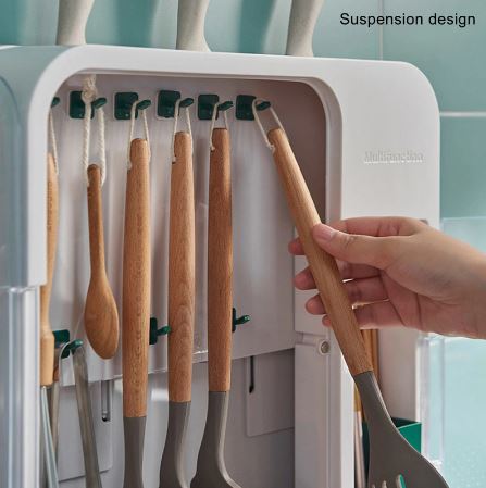 - The hanging design makes it convenient for the utensils to drain and reduce the growth of bacteria.
