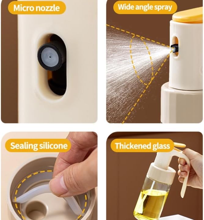 - Continuous and smooth oil spray: Our oil spray bottle has a high-pressure sprayer that can continuously spray oil for a long time without dripping or leaking. The uniform spray can cover the surface evenly and save oil.