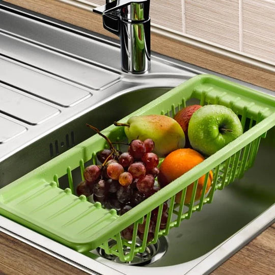- The basket is placed on the edges of the sink on both sides and its bottom is higher than the inner surface of the sink, so you can easily wash and rinse different dishes and food using it.
