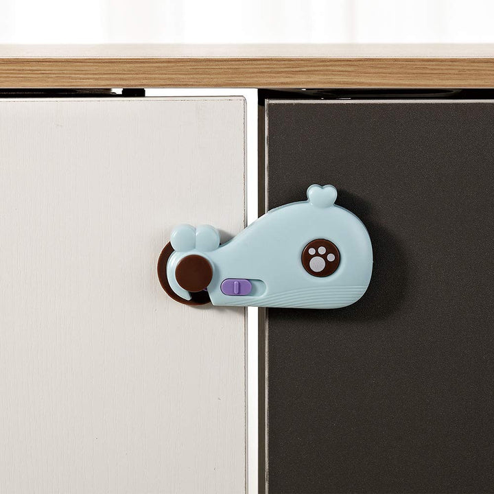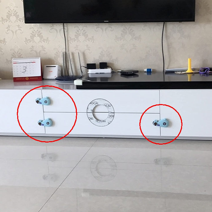 - Child Proof Lock Tough and Durable:Child safety lock easy to install and use:Strong adhesive and come with extra pads in case you have to move them, NO tools and drilling for baby proof.