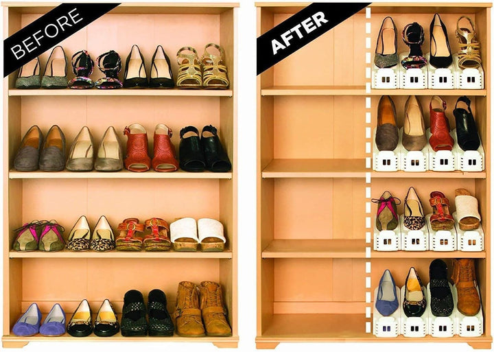 - Shoe Slots space-saving storage double your storage space by neatly stacking shoes one on top of the other.