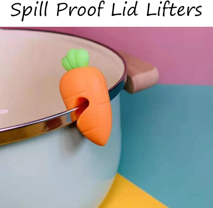 - Our spill-proof lid lifter is designed in the shape of carrots, chicken, and peppers.