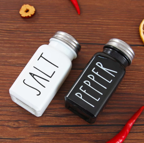 - With the words of salt and pepper bottles, so you know what seasoning is inside without getting confused.