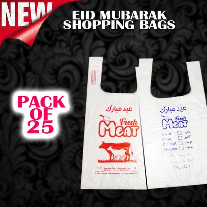 Plastic Bags Eid Mubarak Shopping Bag, Meat Shopper Printing Bag (25 Bags)