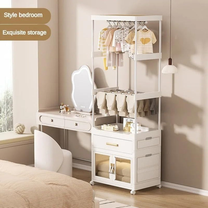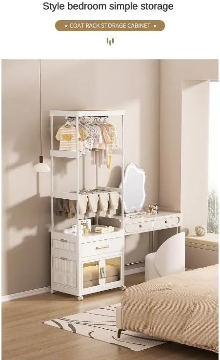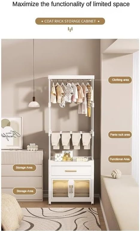 - The unique design of this clothes rack makes it an essential part of your home. It not only provides space for hanging clothes and hats, but also comes with storage cabinets and drawers for conveniently organizing and storing your clothes, scarves, hats, and other accessories.