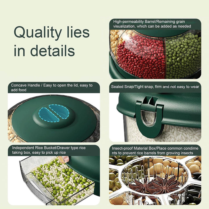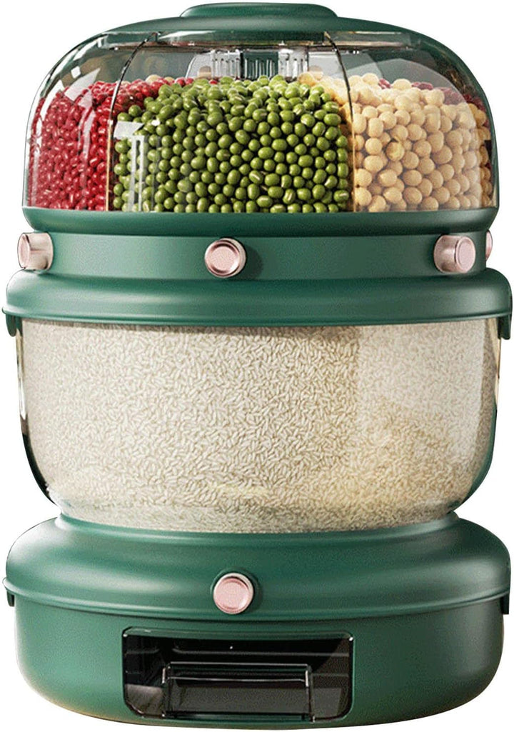 - Double Layer Rice Bucket Large Rice Dispenser Moisture Proof can be easily loaded, 5KG + 4KG, with a large capacity, which can meet the needs of big families, and can be easily disassembled to add grain.