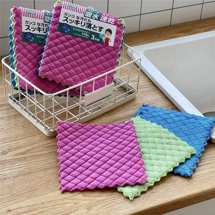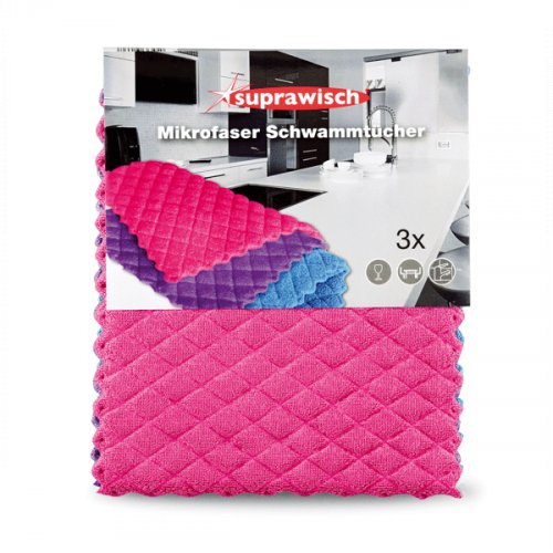 Made from a synthetic sponge quilted between microfiber cloths that comes in a 3-pack
