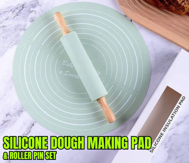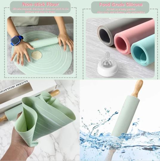 - Non-Stick Silicone Dough Mat & Adjustable Rolling Pin Set, Upgrade your baking with this premium non-slip silicone mat and adjustable rolling pin.