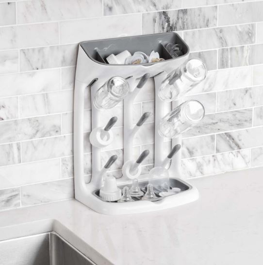 - With a compact design that makes a big impact, the Space Saving Drying Rack will hold cups, bottles, and all their parts without cluttering the countertop.