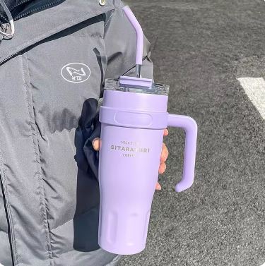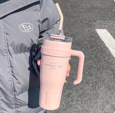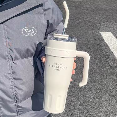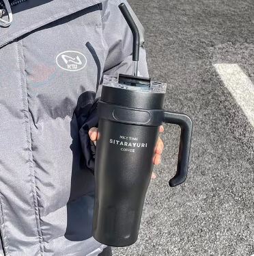 Stainless Steel Ice Tumbler, Large Capacity Drinking Coffee Water Cup with Straw, Simple Water Bottle