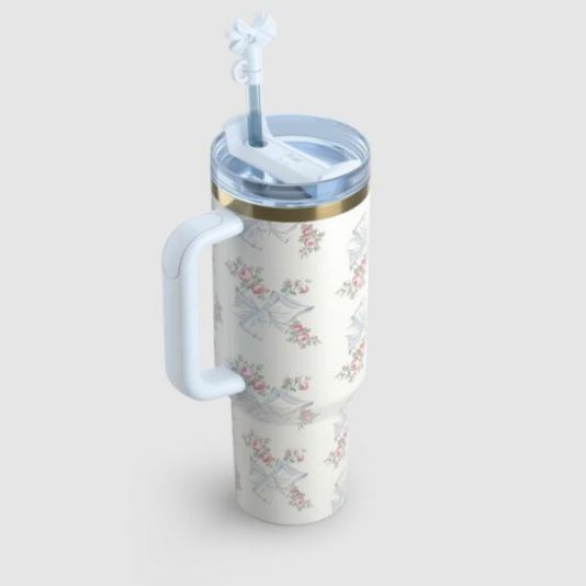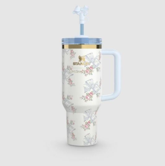 - The Stanley X LoveShackFancy Holiday Quencher 40oz Blue is more than just a tumbler—it’s a statement piece.