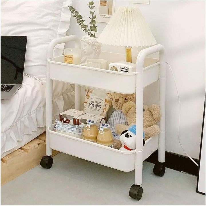 - The Storage Trolley On Wheels, Cart Rack, Snack Storage Rack, Movable Bedroom Kitchen Rack offers ample storage space with its layered design.