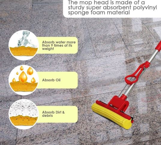 - Easy to clean mop Stainless Steel Telescopic Handle Absorbent Sponge Mop Home Floor Cleaning Tool.