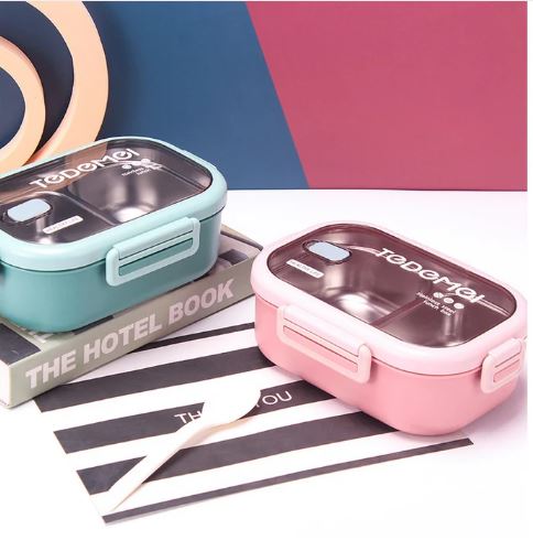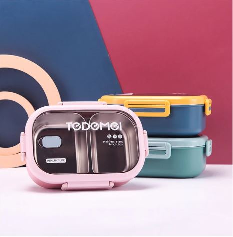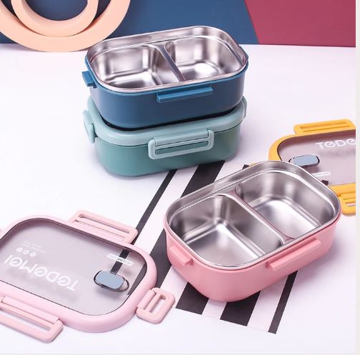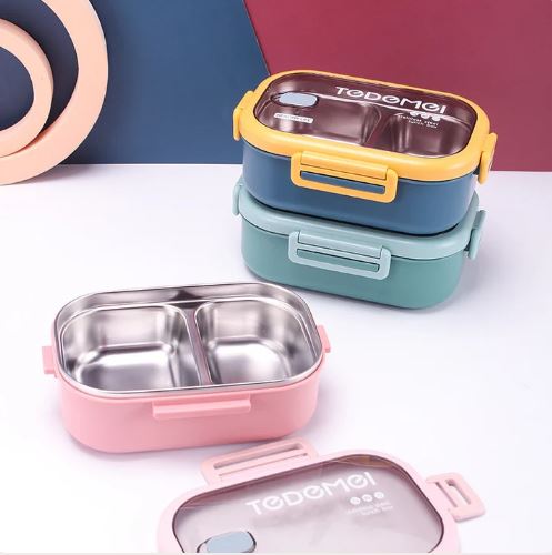 Tedemei 304 Stainless Steel 2 Grid Portable Leak-Proof Lunch Box