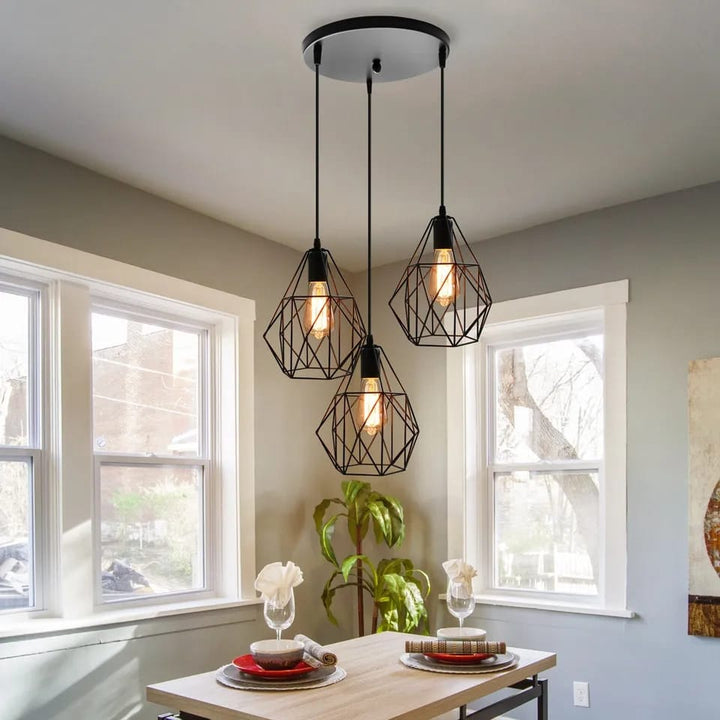 Trio of Lights: As the name suggests, the fixture incorporates three separate light sources or bulbs within the cage canopy. This trio of lights creates a balanced and well-distributed illumination, making it suitable for various settings, including dining tables, kitchen islands, or living spaces.