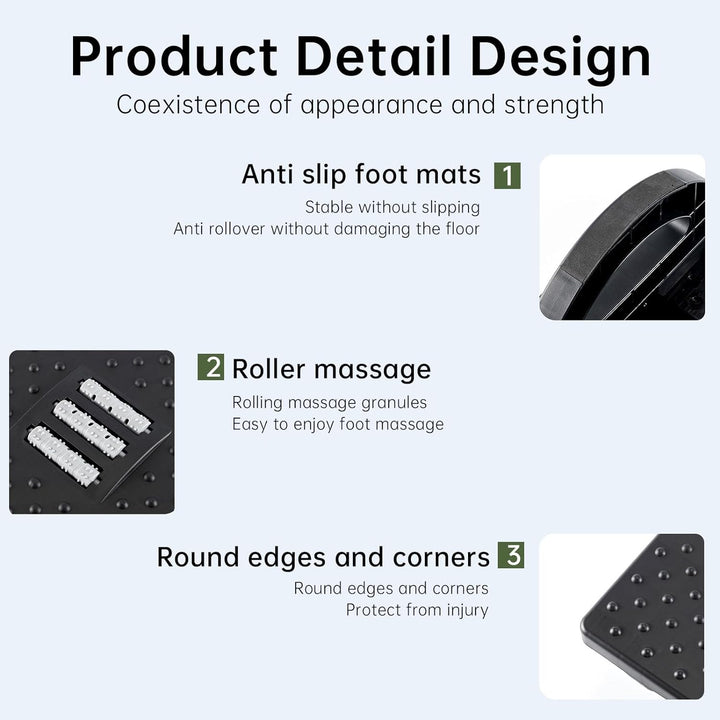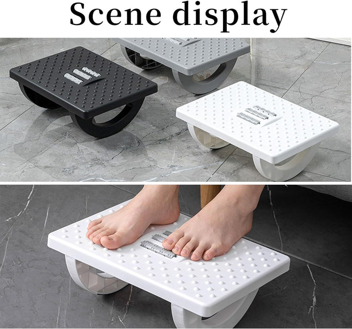 - Massage Surface & Roller: Textured surfaces with massage and roller, that massage the feet can keep you comfortable and induce blood circulation in your lower limbs. This office footrest is designed with firm non-slip legs, making it will not slide on wood floors.
