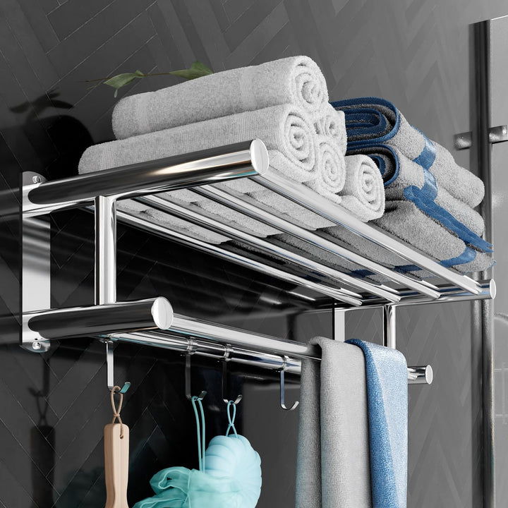 - Convenient Hooks: Equipped with practical hooks, our towel rack offers additional hanging space for brushes, soap, hairdryers, and other essentials. Stay organized and have easy access to your daily necessities.