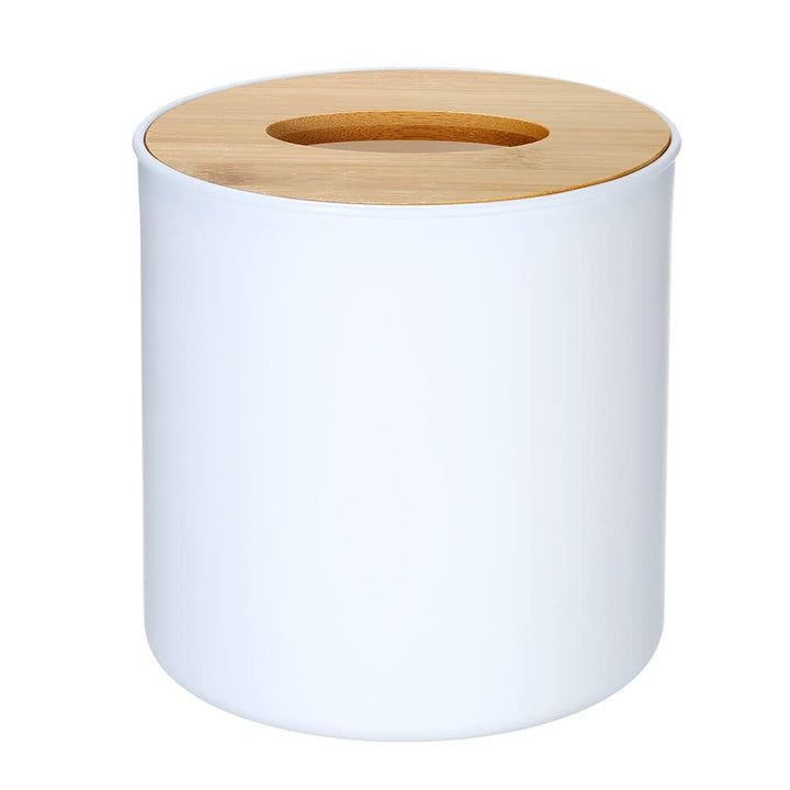 Wooden Cover Plastic Tissue Holder, Anti-Slid Base Wide Opening Tissue Organizer Box (White Color)